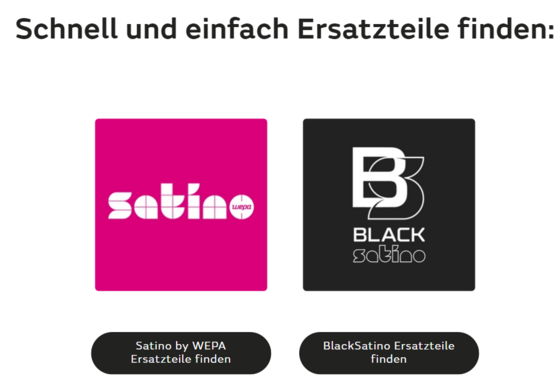 Der Ersatzteileshop ist rund um die Uhr über den Menüpunkt "Services" auf den Websites www.satino-by-wepa.eu und www.blacksatino.eu erreichbar.