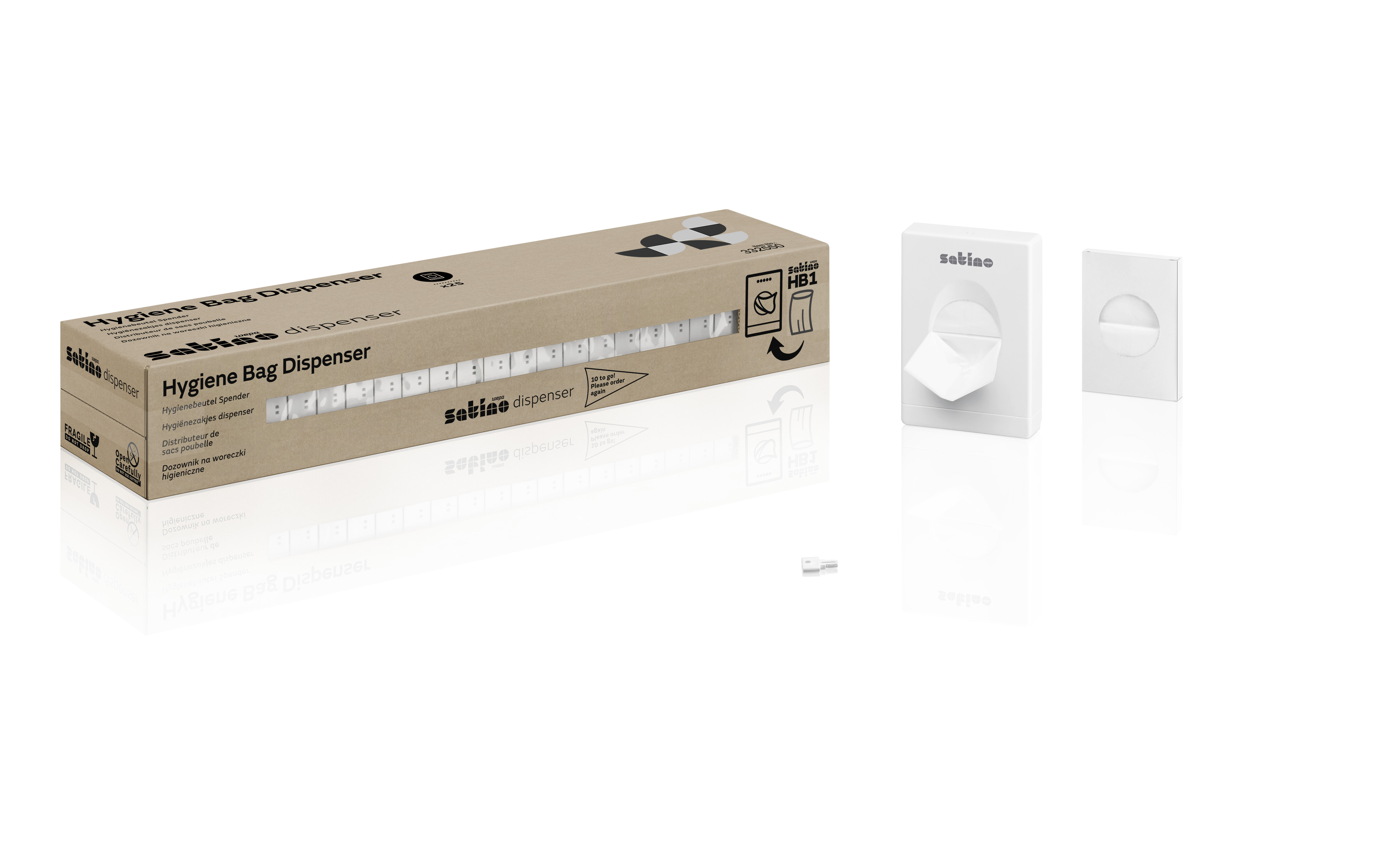 The new Satino sanitary bag dispenser with its modern design not only turns a fresh page in terms of cleanliness in the toilet.