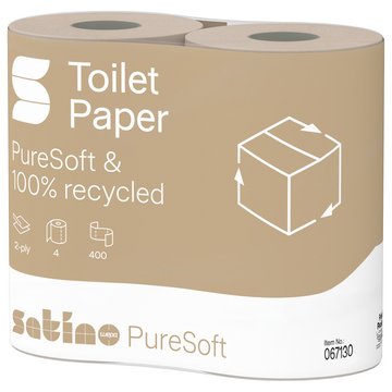Satino PureSoft Toilettenpapier im praktischen 4er-Pack überzeugt durch spürbaren Komfort und hohe Saugfähigkeit.