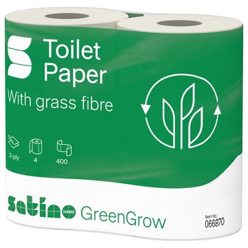Satino GreenGrow Toilettenpapier stehen für optimalen Komfort und zuverlässige Hygiene im professionellen Einsatz. Die innovative Produktlinie kombiniert alternative Recyclingfasern mit Frischfasern aus Miscanthus, einer besonders ressourcenschonenden Zellstoffquelle. Das Ergebnis ist ein ungebleichtes, weiches und saugfähiges Toilettenpapier, das sich ideal für Hotels, Restaurants, Cateringbetriebe sowie Büros eignet.