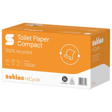 Satino HiCycle Toilettenpapier System-Großrollen aus Recyclingpapier überzeugen durch 2–3-lagige Qualität, hohe Weiße und sehr gute Softness für angenehmen Nutzungskomfort. Die System-Großrolle eignet sich ideal für Hotellerie, Gastronomie, Bürogebäude, Industrie und öffentliche Einrichtungen mit mittlerer bis hoher Frequenz.