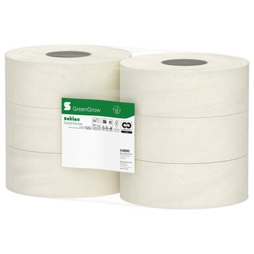 Satino GreenGrow Toilettenpapier Großrollen bieten optimalen Komfort und zuverlässige Hygiene im professionellen Einsatz. Dank Cradle to Cradle-Zertifizierung und CO₂-neutralisierter Herstellung unterstützen sie Organisationen dabei, ihren ökologischen Fußabdruck im täglichen Betrieb zu reduzieren. Die Großrolle sorgt zudem für lange Nachfüllintervalle.